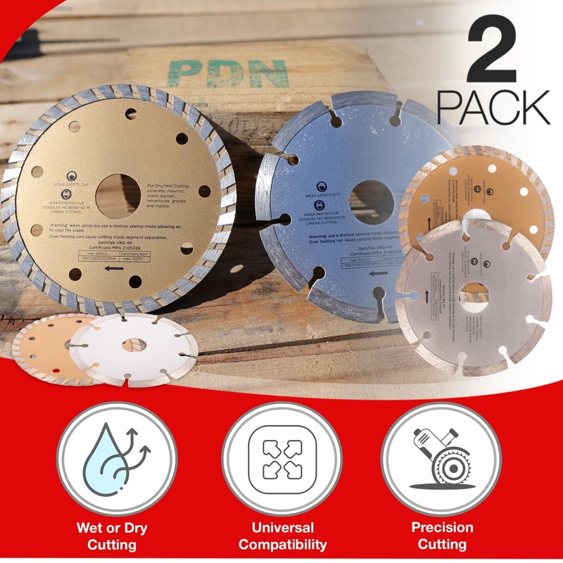 - The 115mm diameter fits most standard cutting tools, with the dry disc measuring 115 x 1.8 x 7 x 22.2mm and the dry/wet disc at 115 x 2 x 7 x 22.2mm. This makes the set an excellent choice for a wide range of cutting needs.
