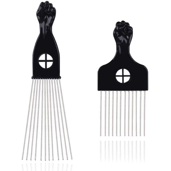 2 Piece Hair Picks Afro Pick Metal Pick Comb Detangle Wig Braid Twist Hair Styling Comb Hair Comb Pick Wave Barber Tool Affinan Hair Styling