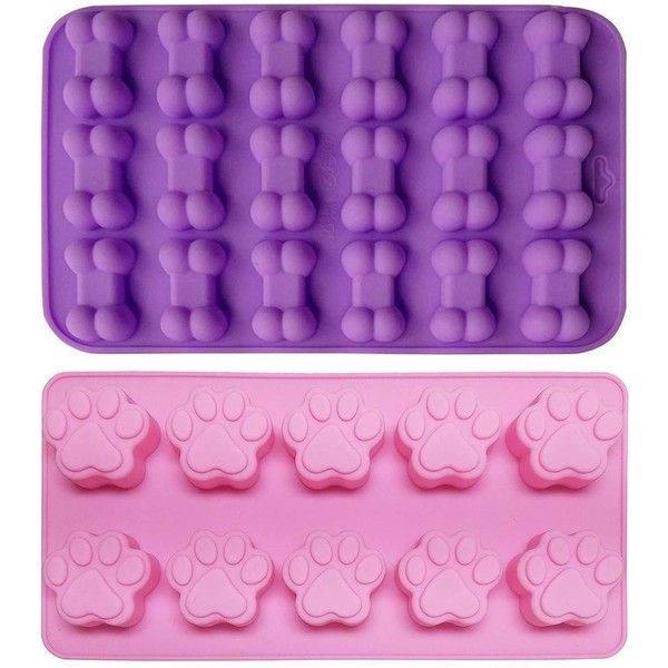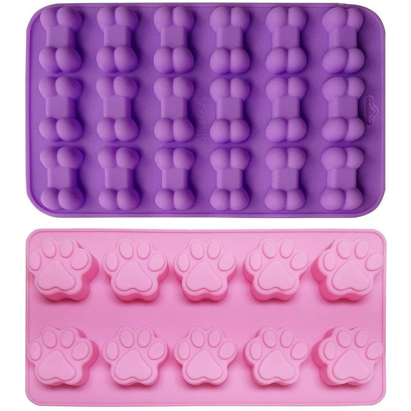 2-Piece Puppy Dog Paw Baking pan, Silicone Dog Bone Cookie Mold Set, Ice Cube Mold, Chocolate Mold,Candy Making Molds