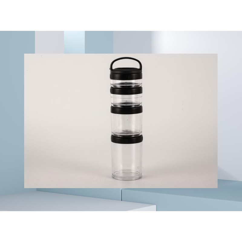 2-Piece Stackable 4-Layer Snack Containers with Handle - Compact, Portable for School and Travel, Transparent and Black.