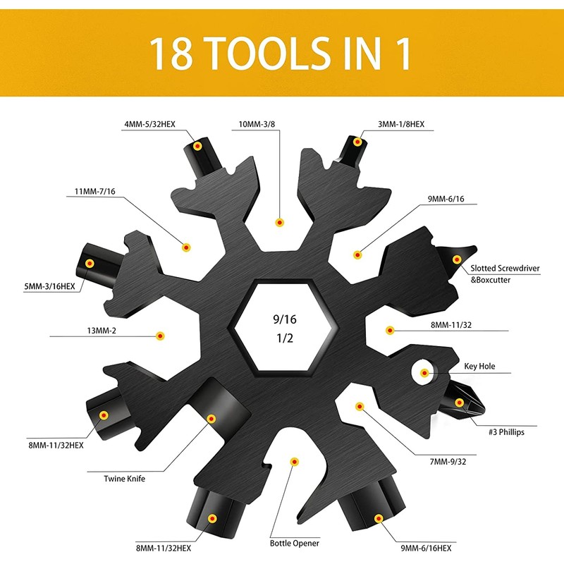 2 pieces 18-in-1 snowflake multi-tool, stainless steel multi-tool, snowflake, multi-tool, stainless steel, snowflake multi-tool, hex key, screwdriver bottle opener, ring wrench, snowflake key ring.