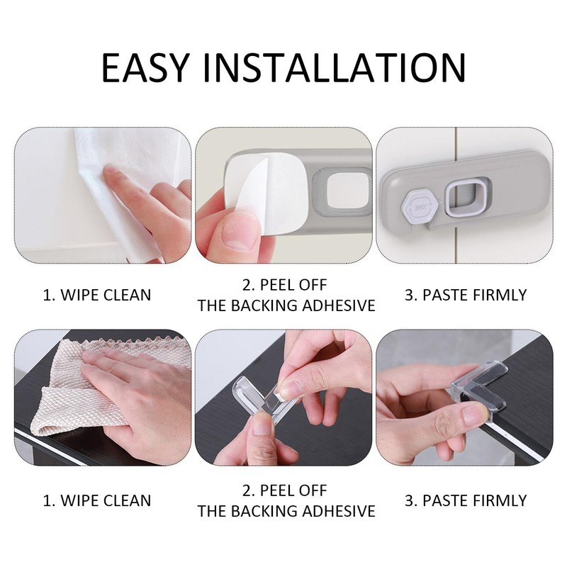- 【Easy To Install】These Safety Locks And Anti-Bump Corners Are Easy To Install And Can Be Done Without Tools. After Use, It Can Be Easily Disassemb Or Reinstal For Easy Maintenance And Replacement, And Is Suitable For Various Types Of Furniture.