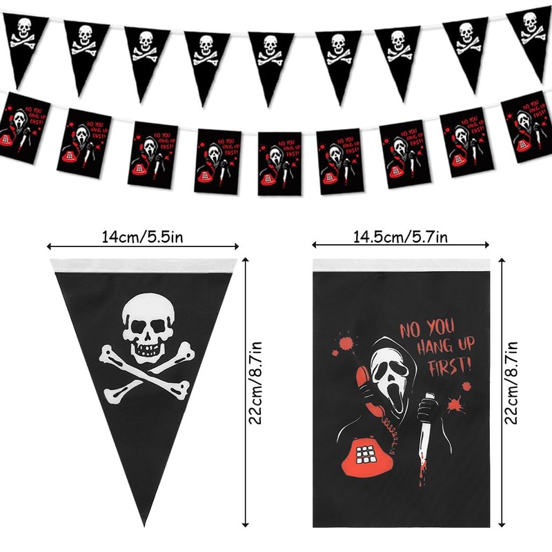 - Proper size: you will get 2 pieces skull flag bunting, each banner consists of 15 flags and approx. 13 feet long, total 30 flags and 26 feet length. Each flag measures approx. 21cm x 14cm