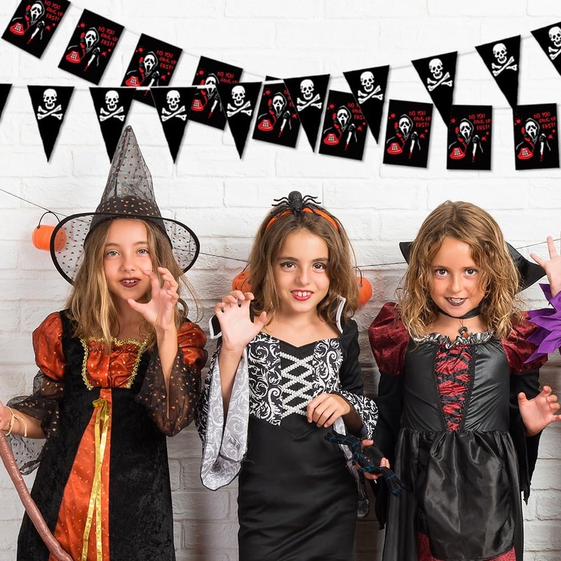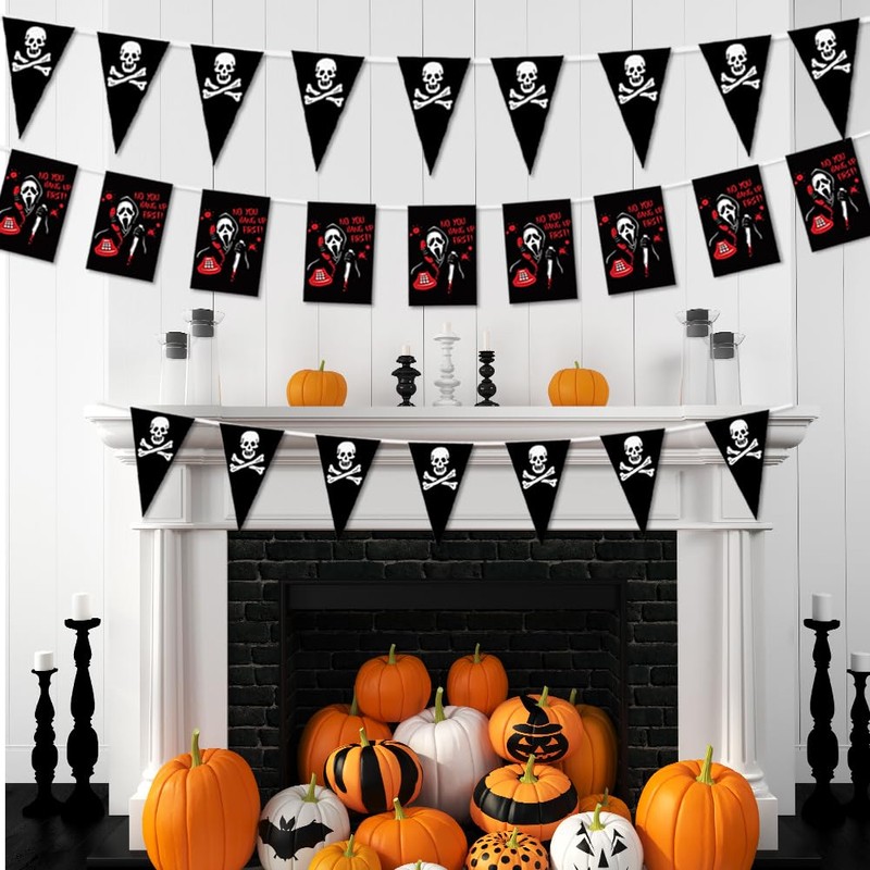 - Eye-catching Design This Halloween decoration bunting is black and clearly printed with skull pattern, just create a mysterious atmosphere when applied to theme parties.