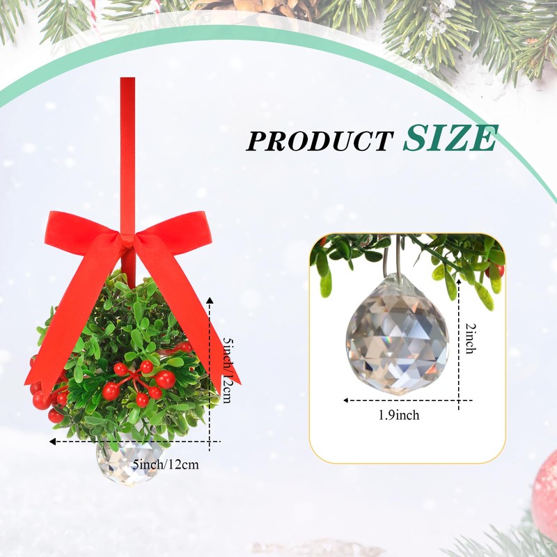 - Size information: each holiday artificial mistletoe ball measures approx. 5 inch/12 cm in diameter, and the crystal jewel pendant measures approx. 2 inches/ 5.2 cm, proper size for you to decorate more easier, bring a fresh atmosphere to your home