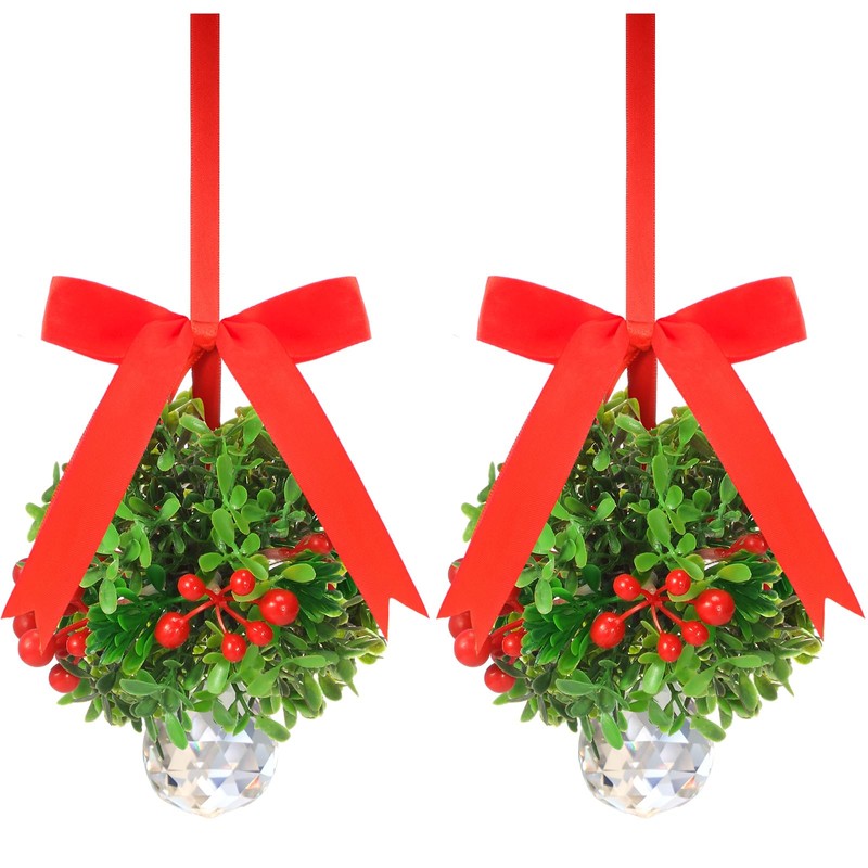 - Package included: you will be provided with 2 pieces Christmas mistletoe hanging balls with red bow knots and 2 pieces ringing crystal jewel pendants, sufficient quantity and sensible combination will meet your festival decorative needs, and you can share them with your family and friends