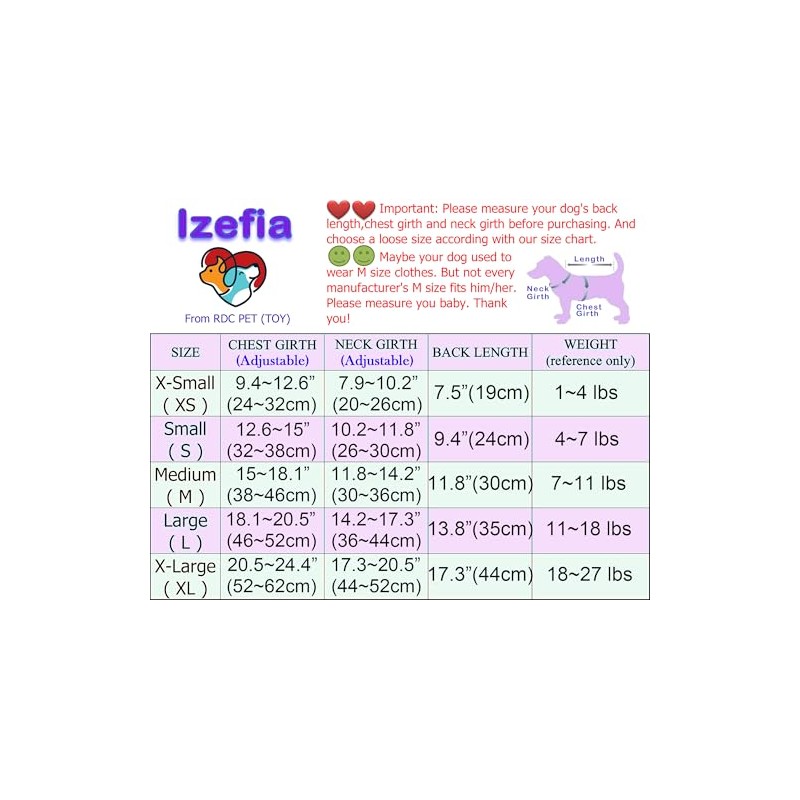 Various choice of sizes, Mainly for small dogs, puppy. Please don't choose size according to a usual size, but to measure your pet's neck girth, chest girth and back length (especially the chest girth) and choose the correct size according to our size chart. If your pet is growing, please choose a larger size.
