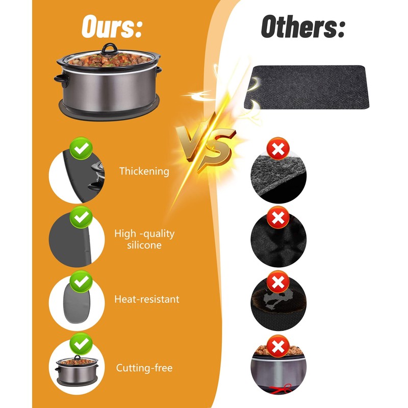 - 【Widely Applied】: Slow cooker heat resistant mat Suitable for most 6-8 QT oval slow cookers, also suitable for air fryers, coffee makers, pressure cookers, blenders, stand mixers, slow cookers, toasters and microwaves.