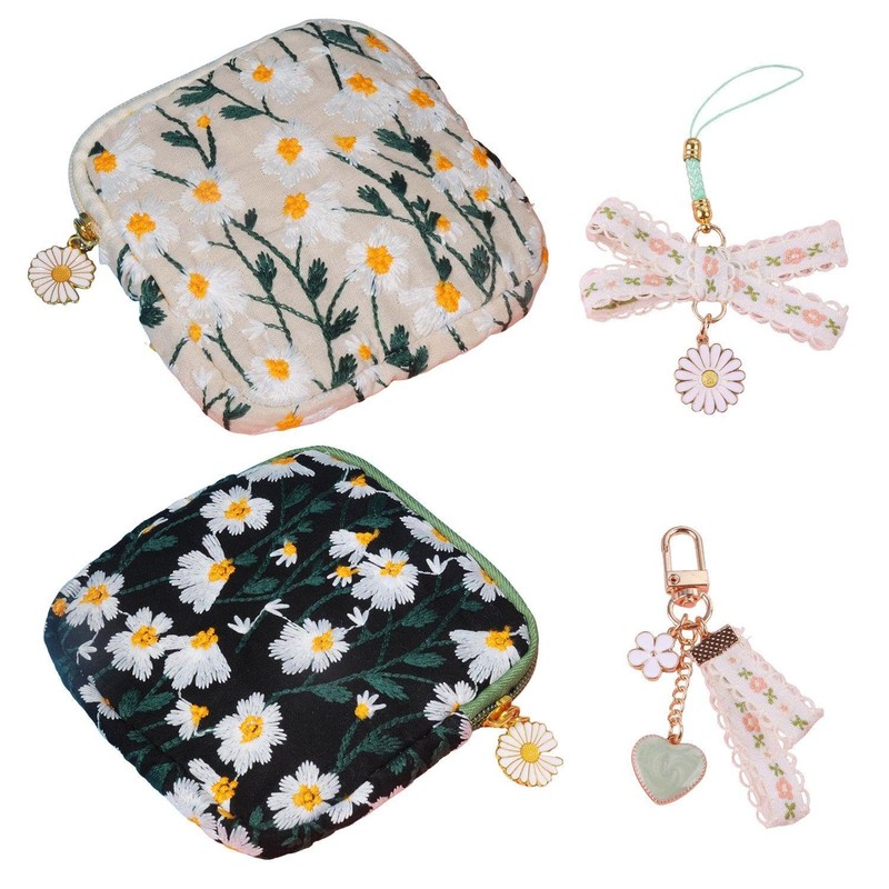1. This Product Includes A Cute Daisy Embroidered Storage Bag And A Uniquely Designed Keychain, Suitable For Daily Storage And Decoration.
