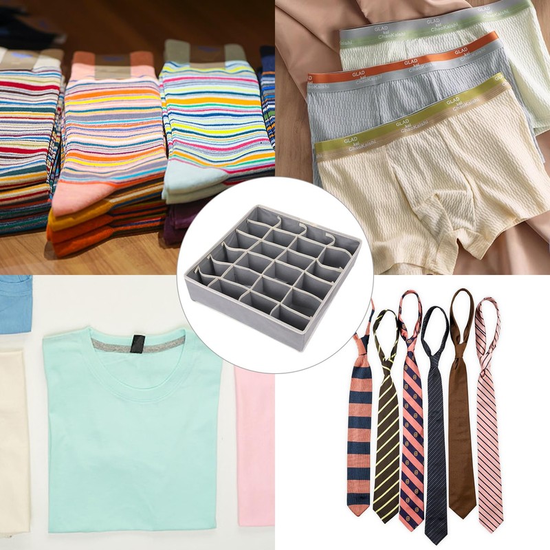 - 1. Product details: You will receive 2 pieces of divided storage bags, the color is gray, the size is 32*32*10cm, 24 storage compartments, our wardrobe organizer box can help you maximize the use of space and keep your clothes and Accessories are well organized.
