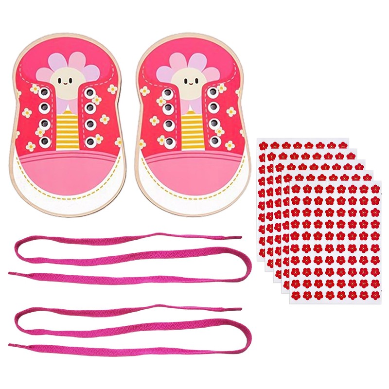 - [Product Content]: You will receive 2 pieces of pink wooden shoelace learning boards, size 9.3*14.3*0.5cm, and 5 sheets (400 pieces) small red flower praise stickers, size 19.2*15cm, suitable for children Shoe tying practice and reward use.