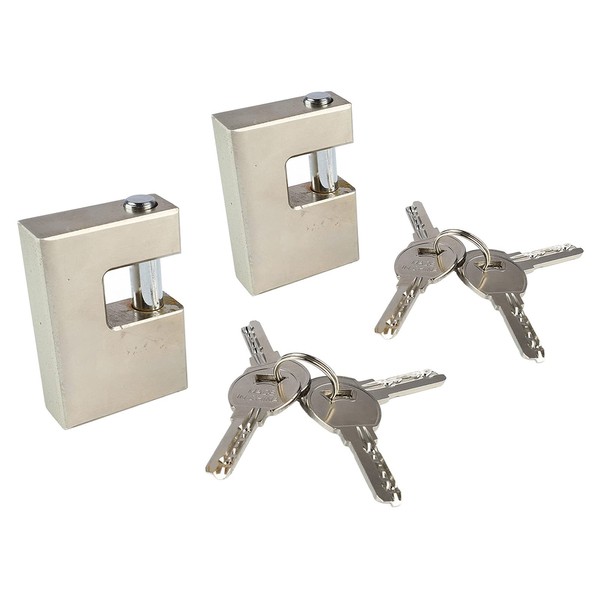 2 Pieces Padlocks with 8 Keys, Rectangular D-shaped Monoblock Locks Copper Waterproof Rustproof Protection Locks for Garage Doors, Containers, Sheds