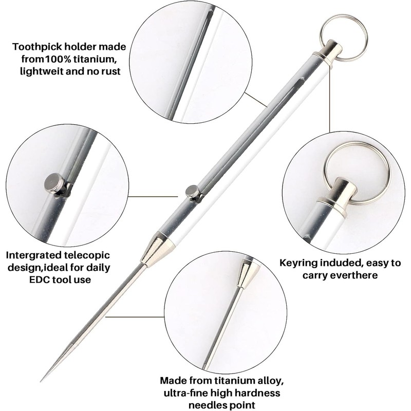 - 【Premium Material 】:Real titanium toothpicks, the toothpick holder made from high quality titanium alloy, smooth and reusable, easy to keep clean.Lightweight, portable, rust-proof.