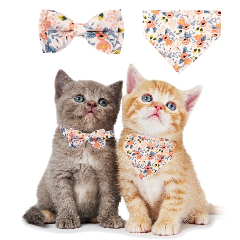 - Fashionable design: the cute kitten collar is equipped with a bell and a quick release buckle, convenient to adjust and easy to put on and take off. Puppy collars are printed with beautiful floral patterns, fashionable and beautiful. They are not only cat collars, but also cat bandanas and cat flies.