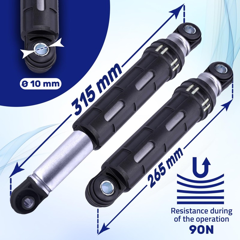- Washing machine parts & accessories parameters: length in stretched state 315 mm, length in folded state 265 mm, hole diameter 10 mm. The resistance during operation is 100N.