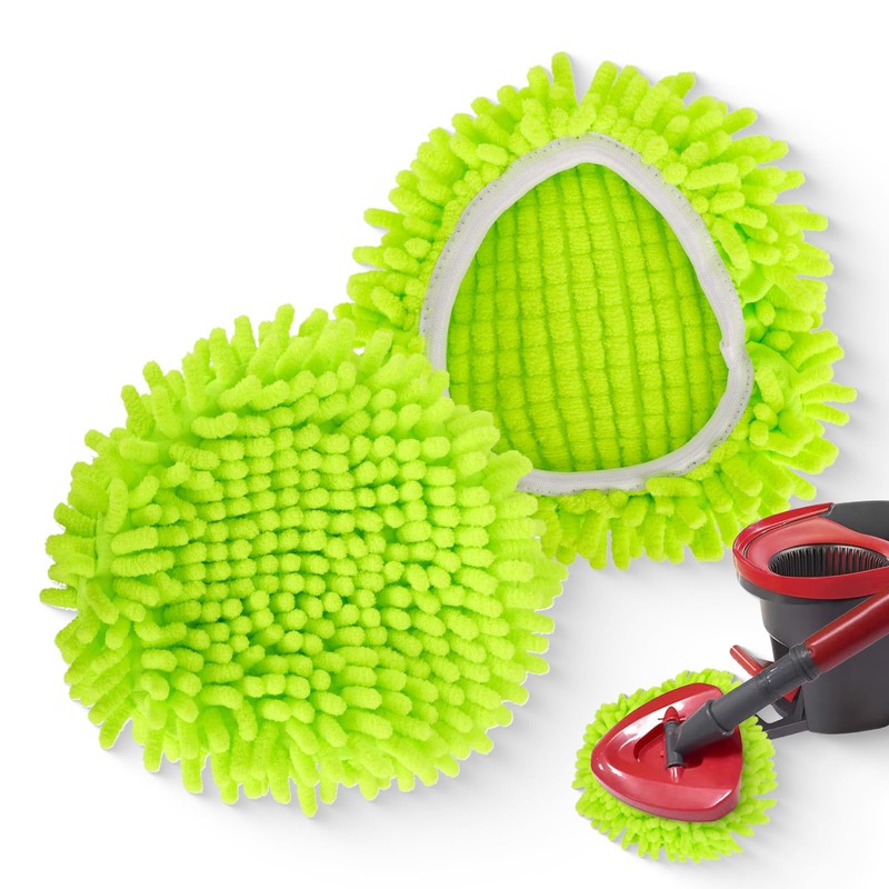 2 Pieces Spin Mop Head Refill, Microfiber Mop, Wall Mop, Mop Head Replacement, Suitable for Cleaning Floors, Glass and Walls, Washable and Reusable (Green)