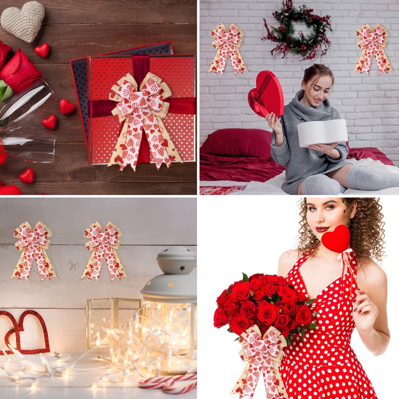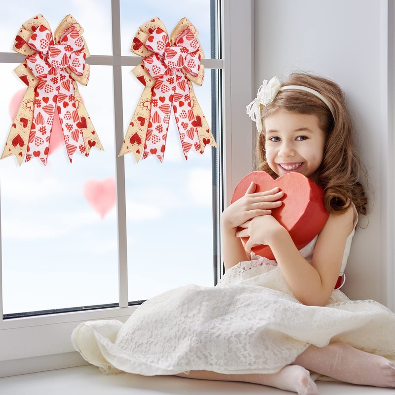 - The package includes: you will receive 2 pieces large Valentine bows, about 10 x 18 inches, the appropriate size will make your Valentine's Day decoration more attractive, and enough quantity can meet your decoration needs, making you more conspicuous
