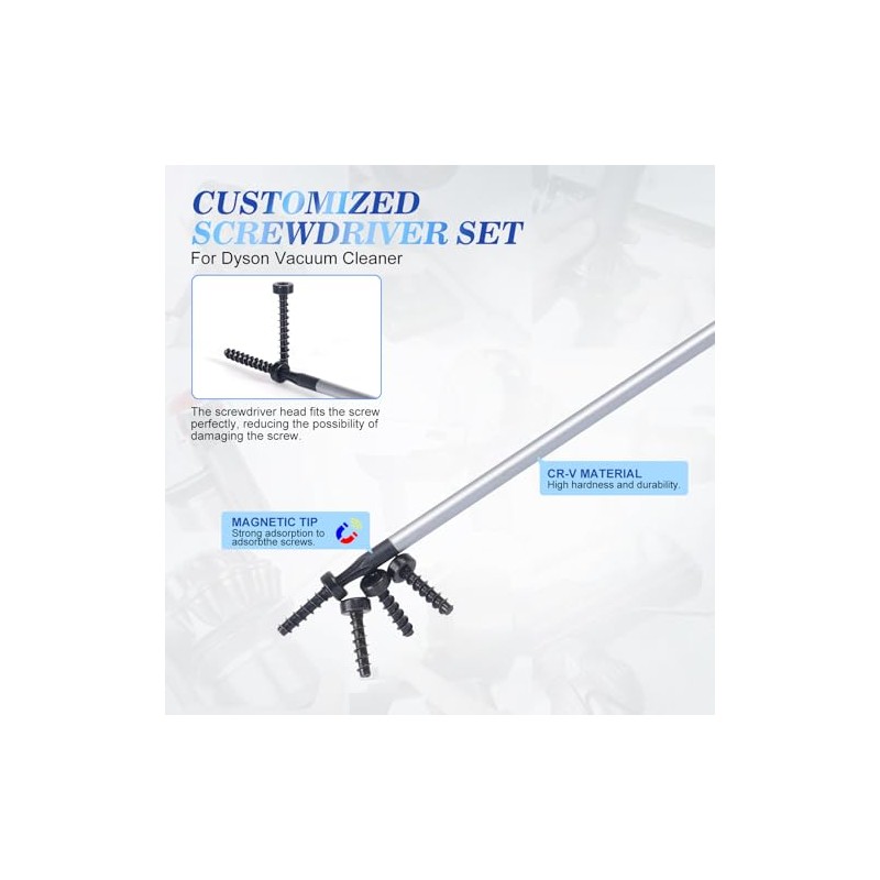 - Con herramientas de reparación personalizadas: ¿Por qué elegir nuestros productos? Nuestro paquete incluye un destornillador Torx largo T8 especialmente diseñado y un spudger, diseñado para adaptarse perfectamente a tus necesidades de reparación de aspiradoras. Estas herramientas personalizadas garantizan precisión y facilidad durante sus tareas de mantenimiento