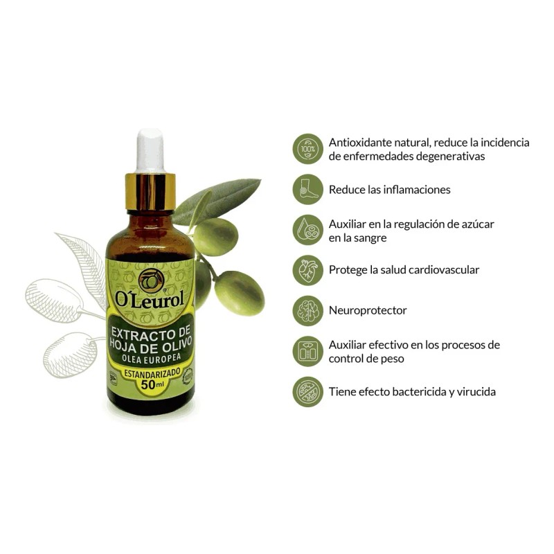 Extracto de hoja de olivo con Oleuropeina y Polifenoles, provenientes de nuestras propias huertas, que están cuidadosamente manejadas bajo un sistema agroecológico, libre de agro tóxicos, amigable con la naturaleza, las cuales son recolectadas y secadas al sol de forma natural.
