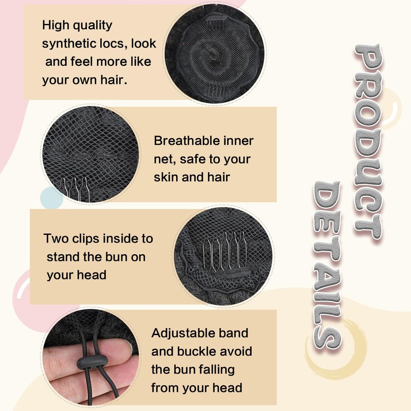 - Características: la cola de caballo Loc está prediseñada, hermoso moño de rastas sintéticas, textura clara, sin enredos. Tiene un cordón, dos peines en el interior, no se deforma, fácil de llevar