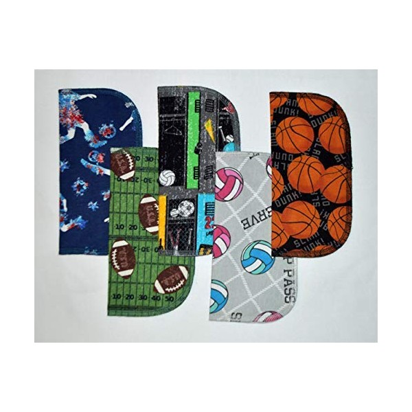 2 Ply Printed Flannel 8x8 Inches Little Wipes Set of 5 Sports Loving Fans