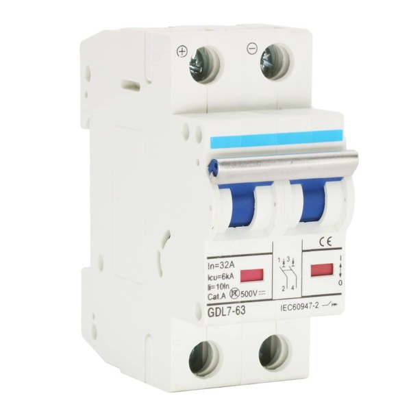 2 Pole DC Miniature Circuit Breaker, 500V 32 Amp DC Breaker Solar Disconnect Switch C32 for Solar Panel PV System