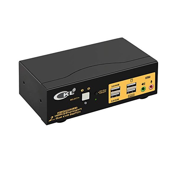 - 【DUAL MONITOR KVM SWITCH FOR 2 COMPUTERS】 Perfect for hooking up 2 desktops or laptops with HDMI and Displayport interfaces to share one set of keyboard, mouse and 2 monitors for extended or mirrored screens. Recommend to use one HDMI monitor and 1 Display Port monitor for the display outputs. A premium KVM switch for setting up an efficient workspace and work safe from home.