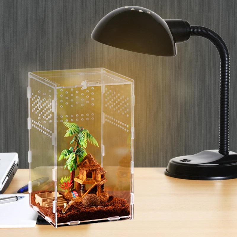 - Visual 360 degree observation: acrylic terrarium offers a transparent 360 degree view, so you can watch your reptile or insect companion from any angle. Each acrylic plate is covered with a protective film on both the front and the back to avoid scratches during transport. Please tear off the protective film before use, our products are completely transparent