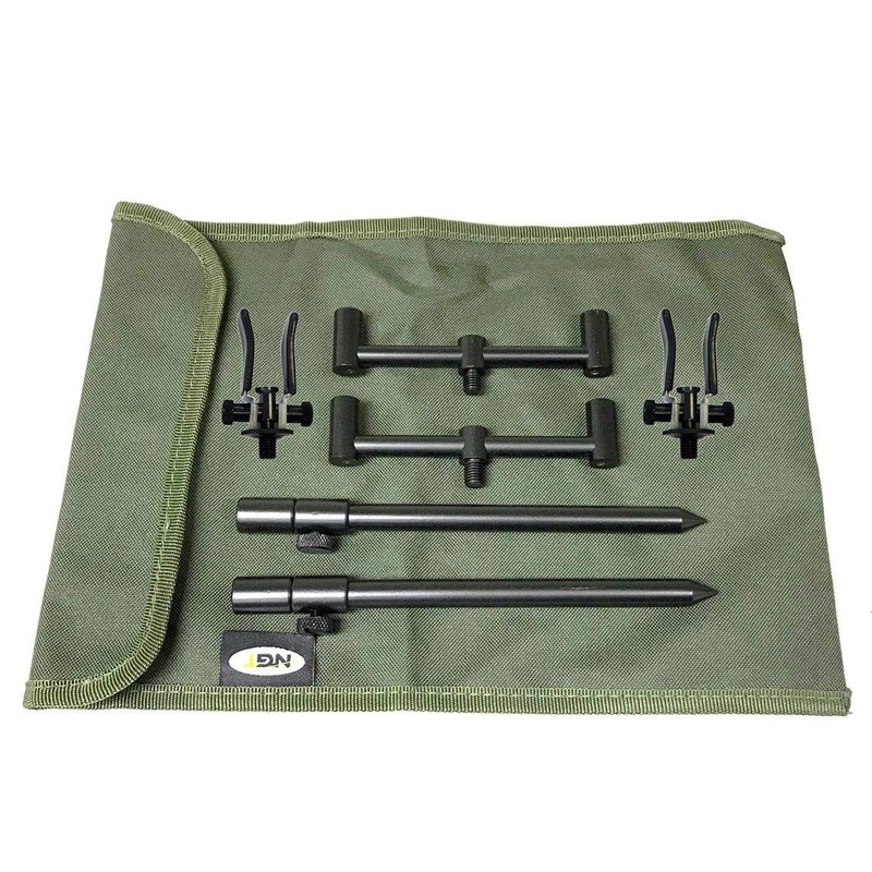 - 2 ROD ALI SHORT BUZZ BAR SET BLACK WITH BAG + 2 RESTS CARP FISHING TACKLE