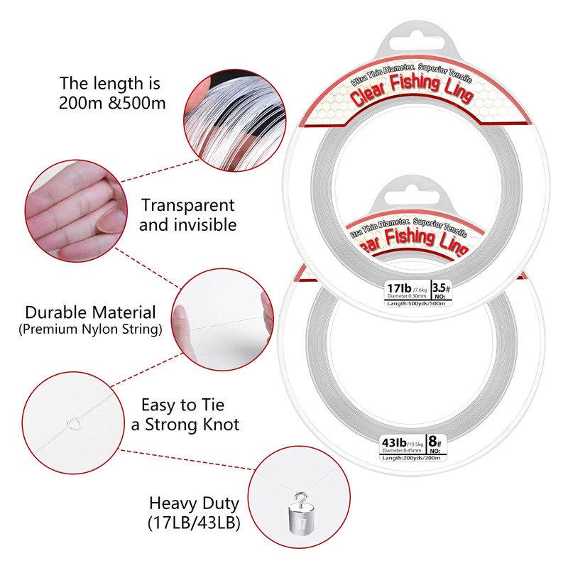 • 2 Roll Clear Nylon Fishing Wire – 0.30mm 500 meters and 0.45mm 200 meters