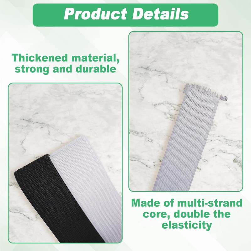 - Strong Elasticity & Hard to Break: Built with high-tensile strength, this band stretches without snapping, making it perfect for repeated use in elastic hair bands, waistlines, or adjustments. Whether you're crafting or repairing, it's a reliable choice for black elastic for sewing and white elastic applications