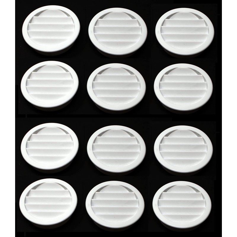 2" Round Plastic Louver Soffit Air Vent Reptile Screen Grille Cover Multiple Colors/Quantities (12, White)