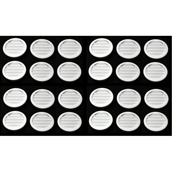 2" Round Plastic Louver Soffit Air Vent Reptile Screen Grille Cover Multiple Colors/Quantities (24, White)
