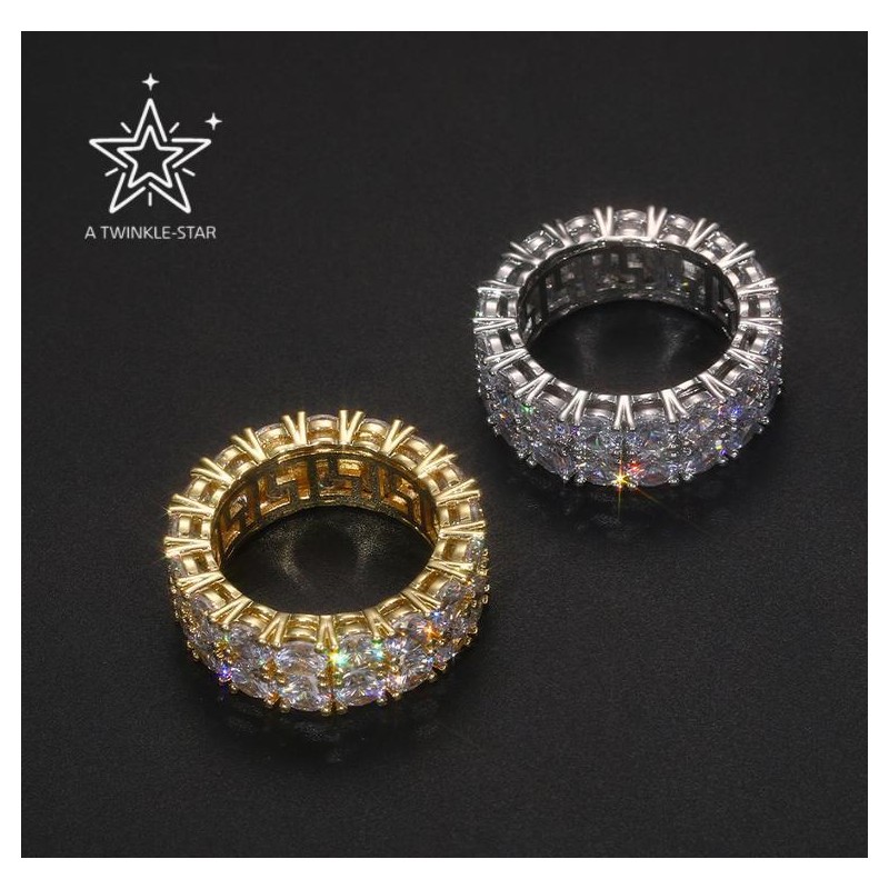 2 Row VVS Synthetic Moissanite Tennis Rings For Women Men Shining Engagement Wedding Hip Hop Fine Jewelry 925 Sterling Silver Ring:_Silver_7inch