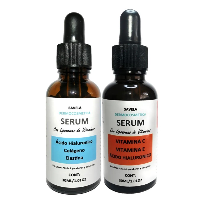 2 Serum Kit Vitamina C, Ácido Hialuronico, Colágeno, Elastin