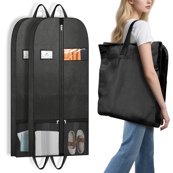 - FORMAL LOOKS KEPT PRISTINE. tuxedo garment bag; garment bag with pockets; water-resistant garment bag; black garment bag; garment bag for tuxedo and shirt; black fabric suit carrier for travel; black dress cover for prom and evening gown; garment bag set for moving wardrobe; reinforced handle garment bag; garment bag for long dress; garment bag for airplane travel; groom suit carrier; wrinkle-resistant black garment bag; versatile gown garment cover; professional, sleek, dependable, secure