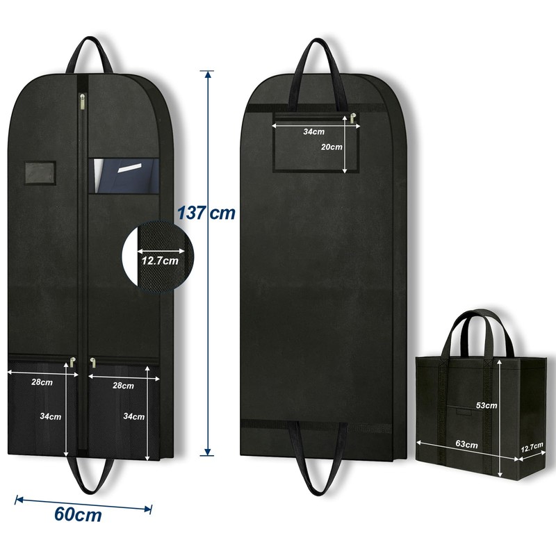 - SMART STORAGE FOR BUSINESS. The black garment bag, premium Black Fabric garment bags, reinforced zip garment bag, and hanger loop suit cover keep kit neat; add luggage tag + id window or shoulder strap upgrade for commute; aims for lightweight but sturdy, value for money, easy to clean; long-tail garment bag for wedding suit uk, lightweight suit cover for interviews uk, durable zip garment bag no plastic smell, suit carrier with clear id window uk read zip feels solid