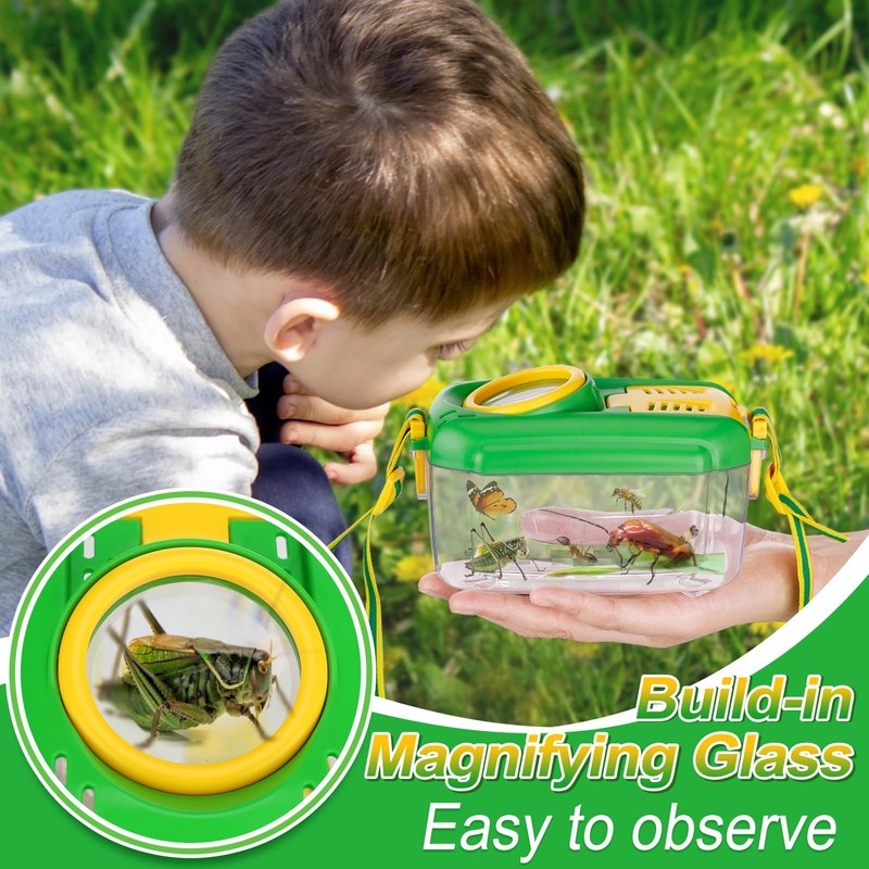 - Thoughtful Design: Binoculars make it easy for kids to observe the location of insects from a distance for easy catching. The insect case is equipped with a round magnifying glass so that kids can clearly observe the insects up close.