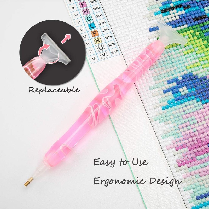 - MULTIPLE TIPS INCLUDED: 2*Resin Diamond Painting Pen(Pink+Blue), Plastic Art Tools Roller , 2*6 PCS Multi Replacement Pen Heads Set, 2*Double-sided adhesive