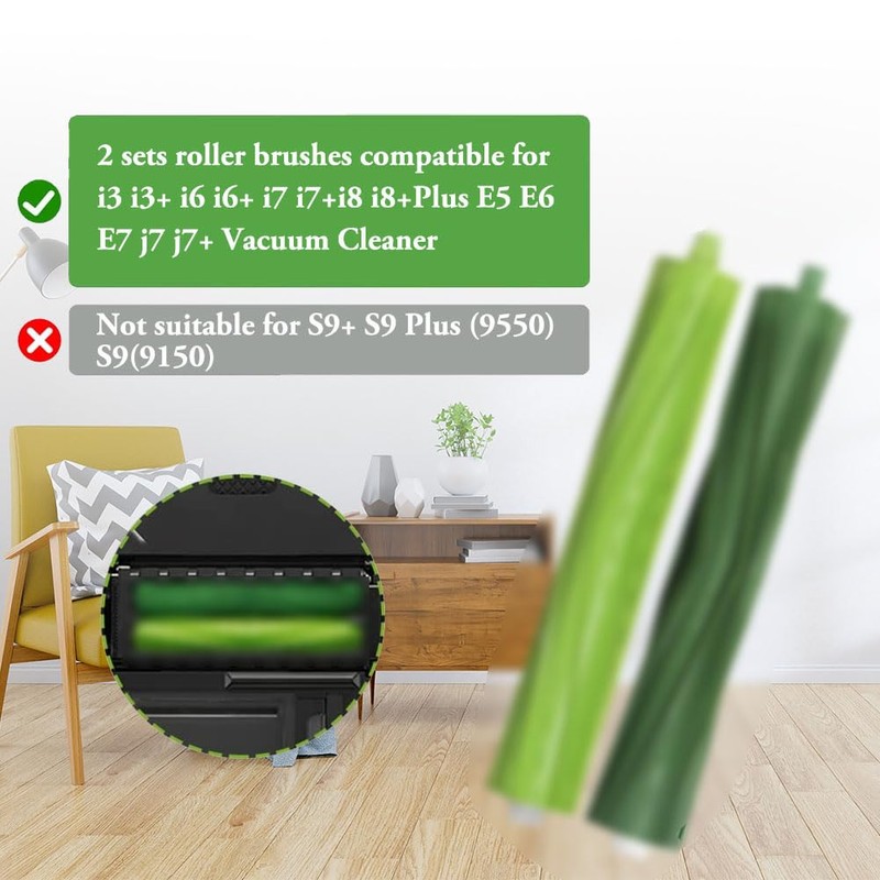 2 Set Replacement Parts Roller Brushes Compatible for E & I & j Series i3 i3+ i4 i4+ i6 i6+ i7 i7+ J7 (7150) J7+ (7550) i8 i8+ Plus E5 E6 E7 Vacuum Cleaner Accessories