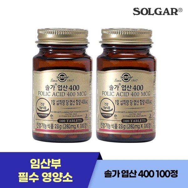 2 SET Solga Fols 400 100 tablets / 2개 SET 솔가 엽산 400 100정