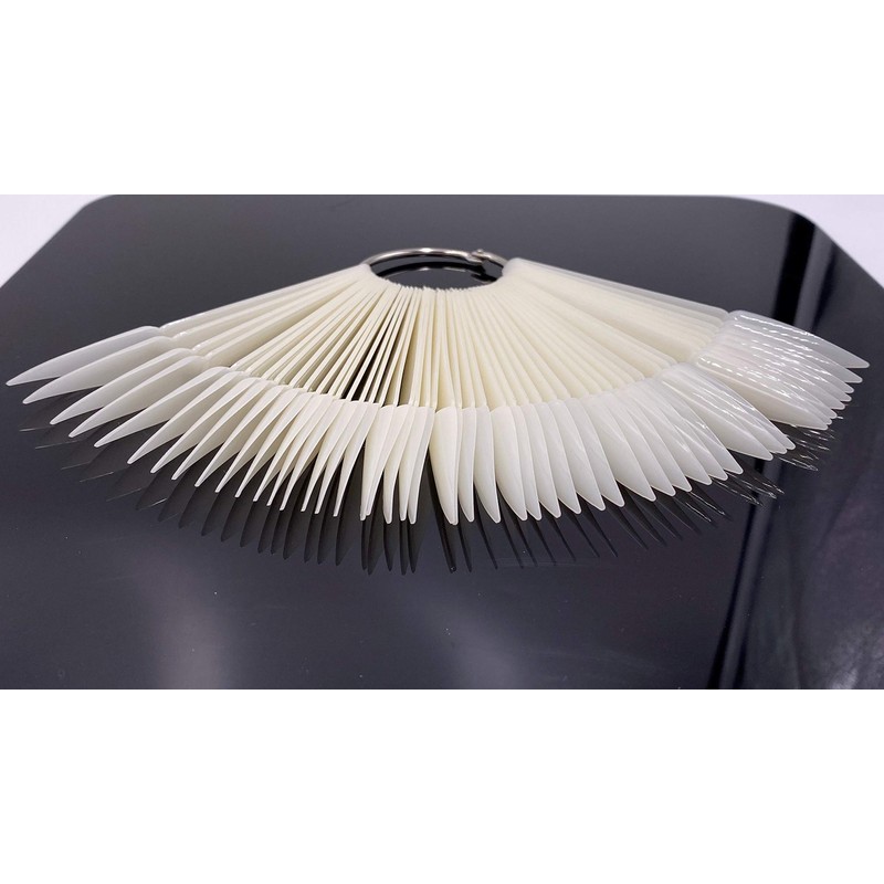 Nail art tip display Suitable for professional use or home use, with the split ring, easy to carry Color:Natural Size: 4.76"*0.39/12.1cm*1.1cm Ring diameter:2.0"/5cm Pack of 2 sets, includes 100 tips