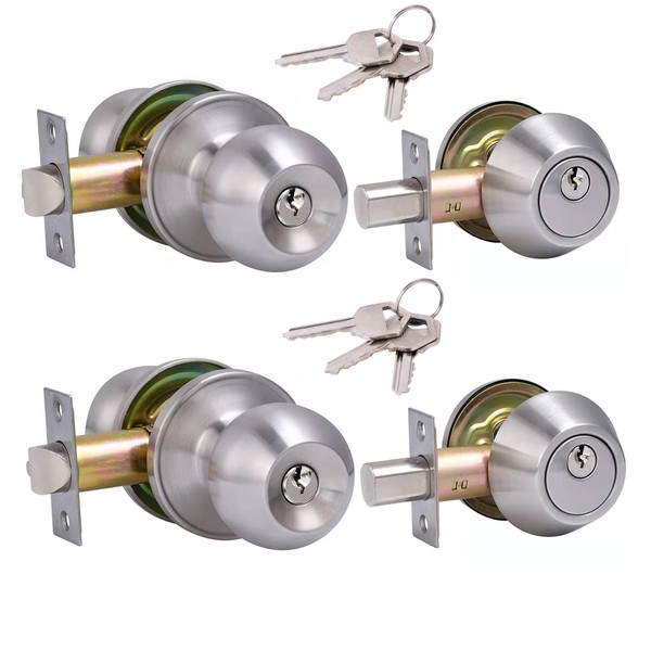2 Sets All Keyed Same Entry Door Knob and Single Cylinder Deadbolt Combo Set, Satin Nickel Exterior Door Knobs with Lock and Keys for Entrance and Front Door