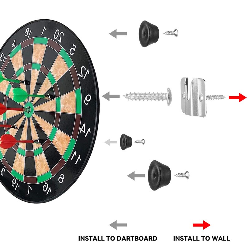 - Package Content: Includes 2 sets of dartboard hanging kits, 2 Brackets, 2 long screws, 4 short screws, 6 nails, 6 mats. Enough size and options for you to choose and replacements.