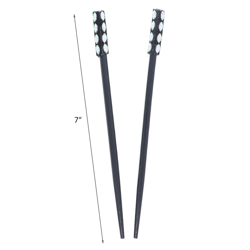 This is a lovely set of 2 wooden Hair Chop Sticks for your hair. Each stick measures 7 inches and has a 4 studs at the top of the stick. Wear your hair in lots of different styles such as buns, twists & more with this hair accessory.