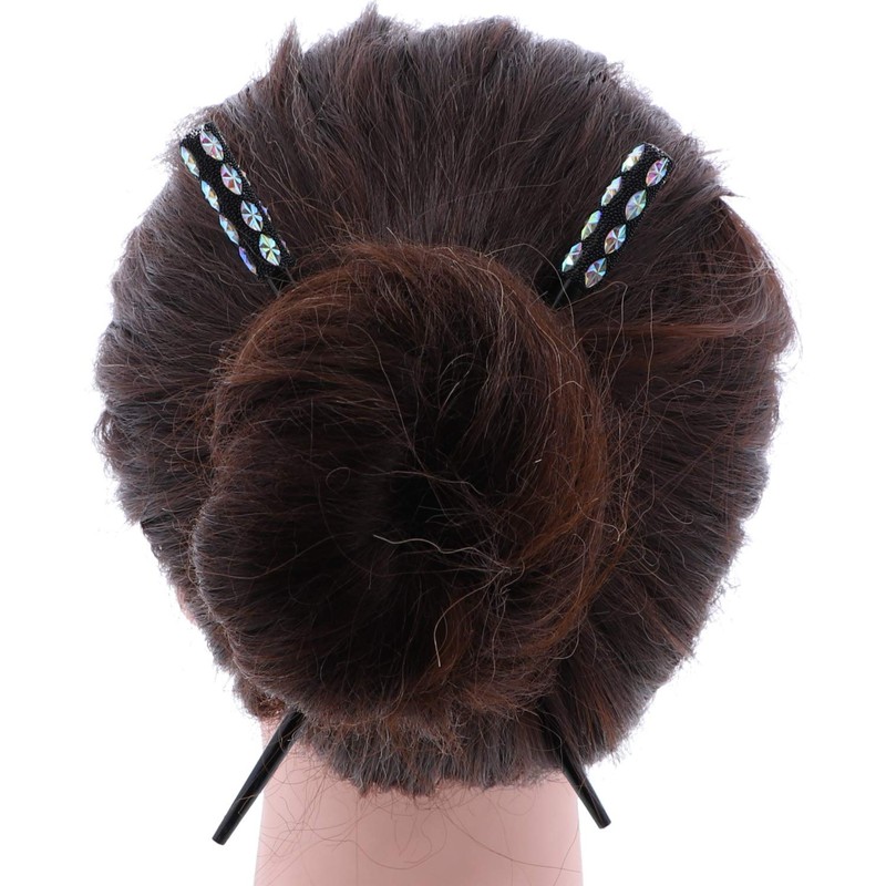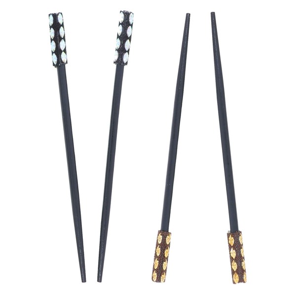 2 Sets of Wooden Hair Sticks With Gem Tops-Mix