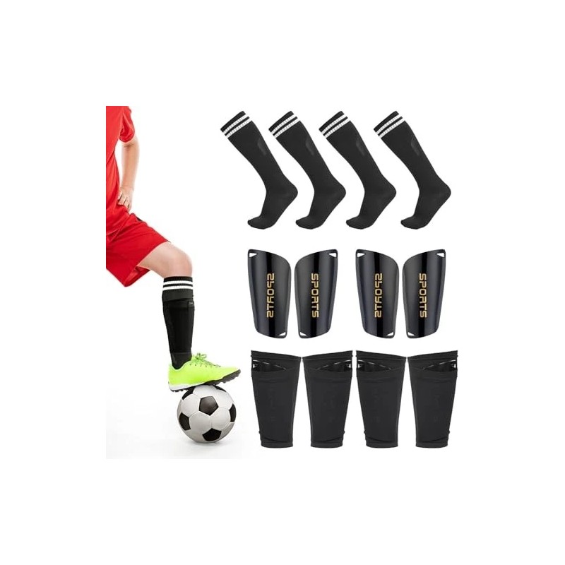 2 Sets Soccer Shin Guards for Youth Adults, Shin Pads and Sleeves Medium Black