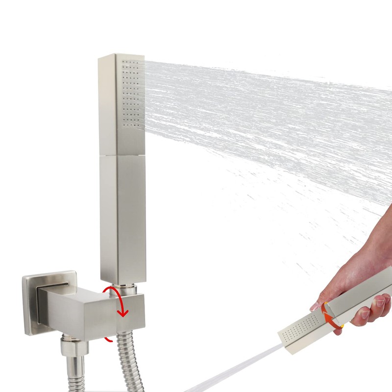 - 【All Metal】- The handheld shower sprayer is made of high-quality solid brass + brushed nickel finish to ensure the life.The combo set is equipped with a 59-inch stainless steel hose,teflon tape, adjustable shower bracket.