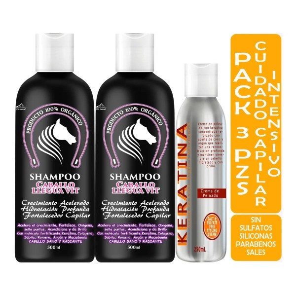 2 Shampoos Extracto Cola De Caballo+crema Capilar Keratina