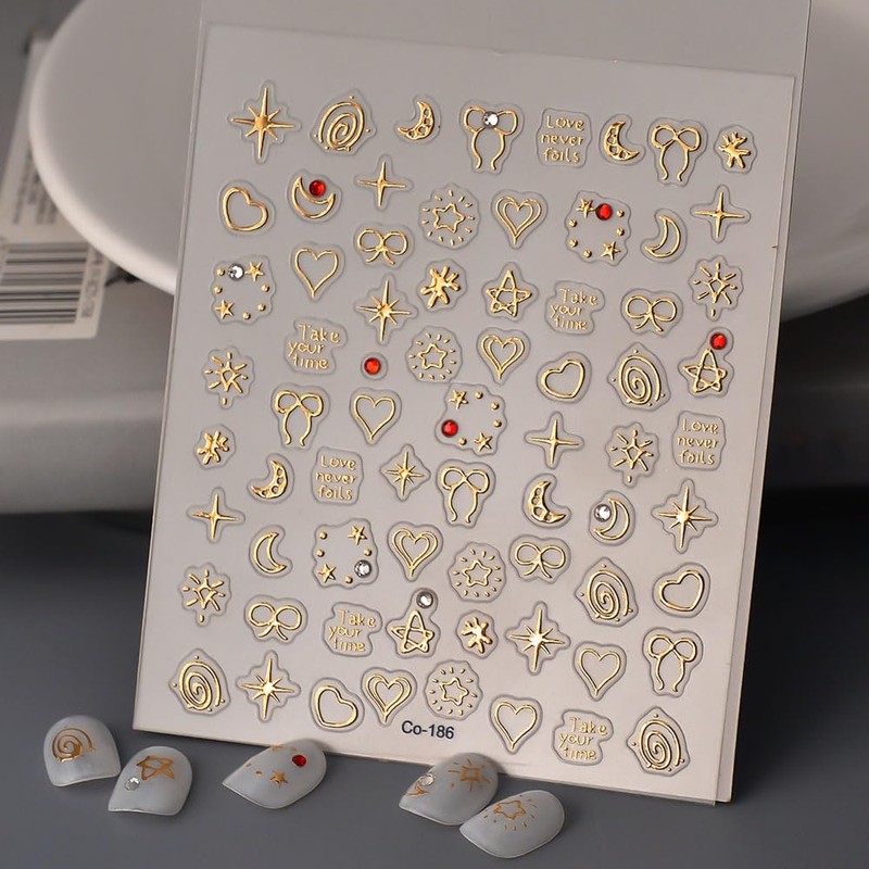 - Suggestion:Our gold sanke star nail stickers.If you want it to stay in place for a long time, do not touch the water immediately after sticker the nail art decals